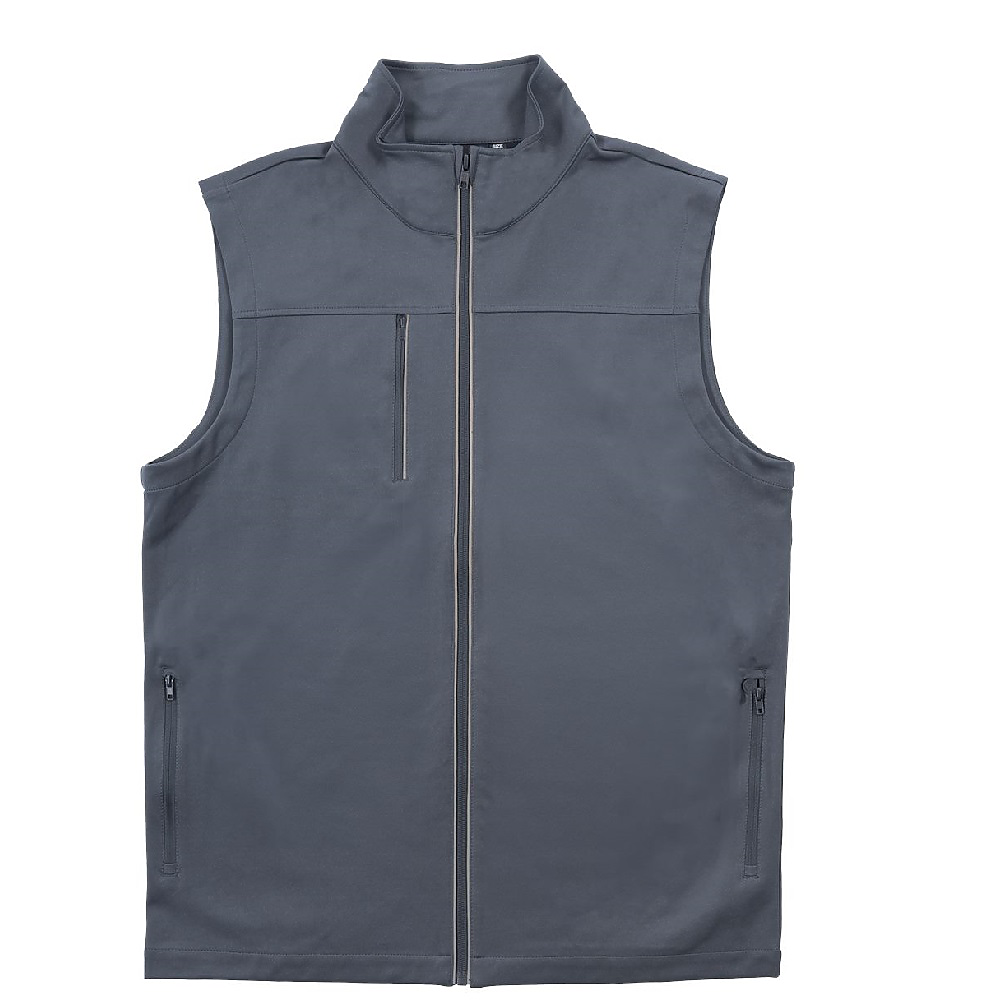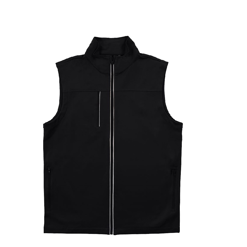 100% polyester golf vest,Water resistant,PFAS free,Right chest zipper pocket,Side seam zipper pockets,Flexible lightweight fabric & collar,Reflective tape and retail styling.