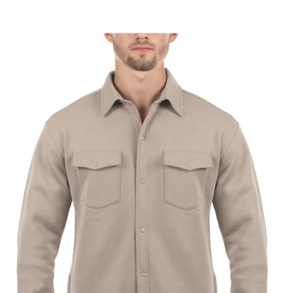 Cotton/polyester jacket,2 snap chest pockets,Snap closures on placket & cuffs .