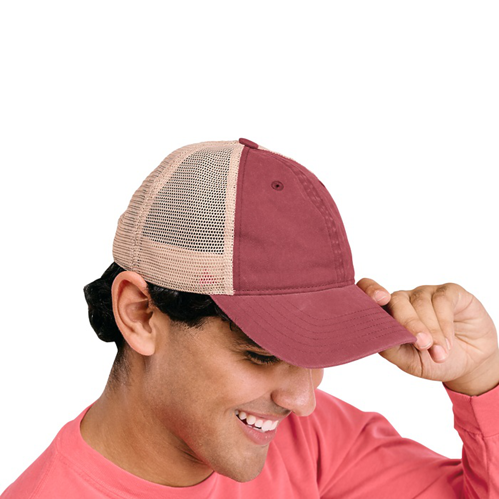 8.5 Oz, 100% cotton twill with heavy brushed finish. 6 panel, unstructured. Curved bill. Selffabric inside sweatband. Soft mesh backed with plastic snapback. Signature twill label inside and flag label at closure. Note: Woven accessory colorways will vary slightly from our cottont-shirts.