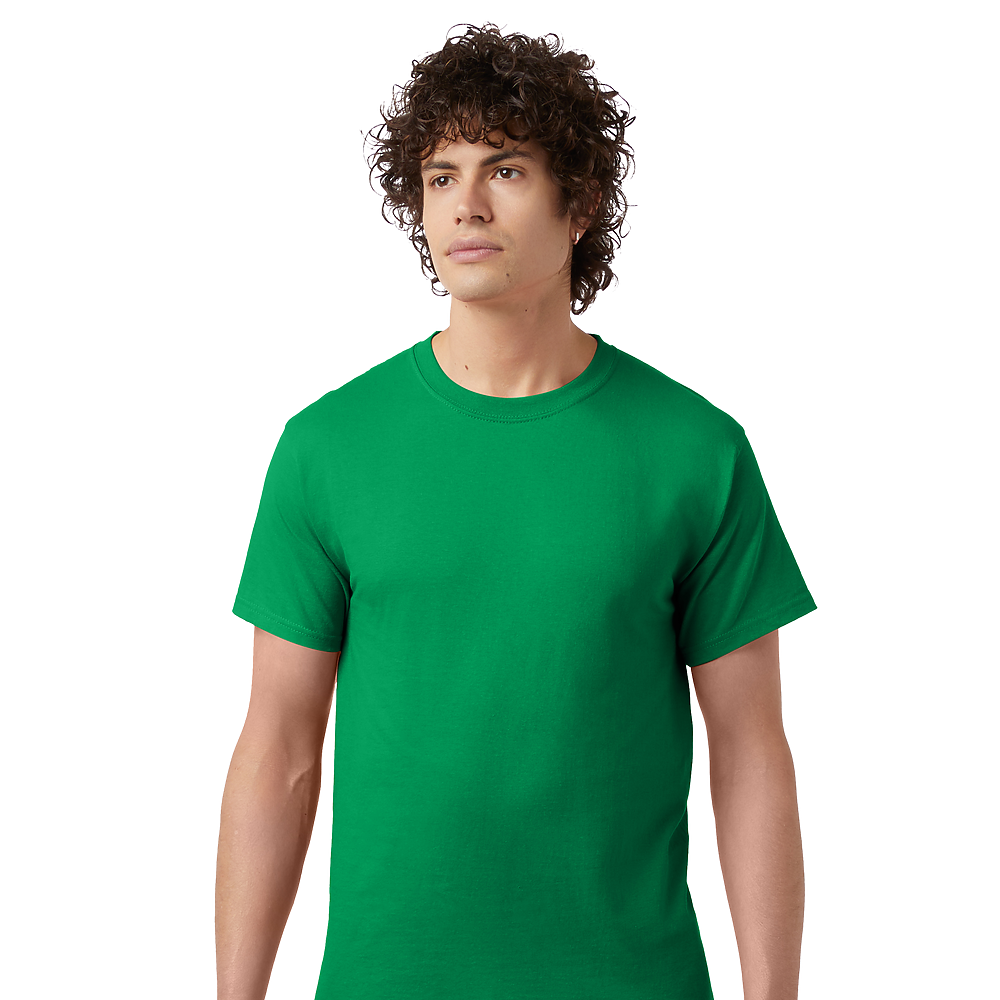 5.3 oz., 100% U.S. Cotton. Shoulder-toshoulder taping. Rib collar. Double-needle sleeves and bottom hem. Seamless body.Relaxed fit. Tag-free neck label. “C” logo on left sleeve.