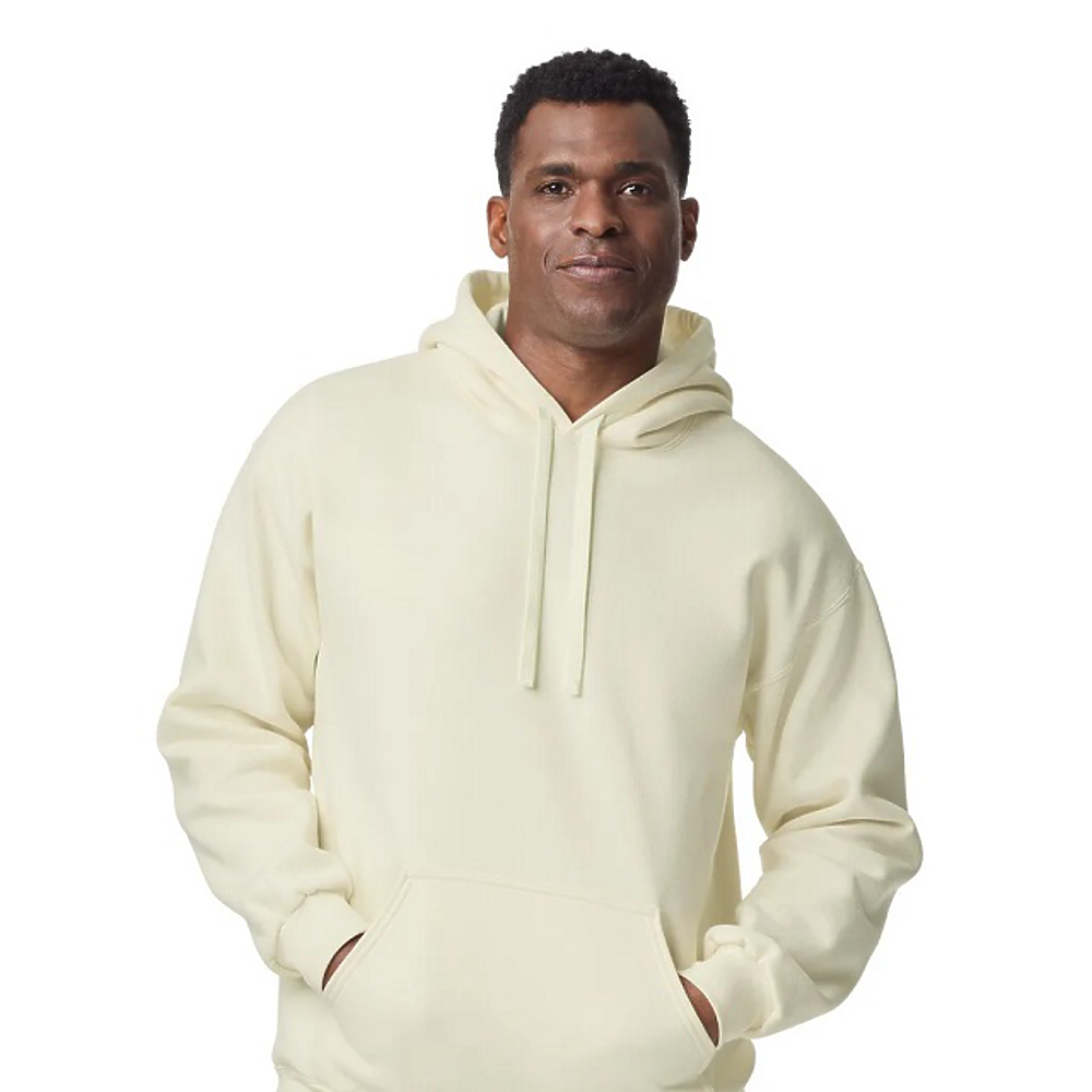 10.5 Oz, 75% U.S. Cotton, 25% Recycled Polyester. The Hammer Maxweight 2-end heavyweight fleece is a combination of style and functionality - made with recycled polyester and 100% cotton face ideal for decorating.. 2 ply self-fabric hood with wide color matched flat cord. Pouch pocket. 1x1 rib at cuffs and waistband for enhanced stretch and recovery. Classic fit, seamless body. High-performing recycled tear-away label.