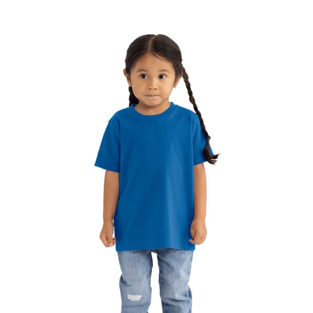 5.6 oz, 100% Carded Ring-spun Cotton. Side seam,regular Fit. Self 3/8 shoulder to shoulder binding,3/4 neckband with 1x1 rib. Heather Colors – 60% Recycled Polyester/40% Cotton.