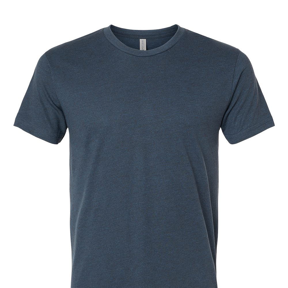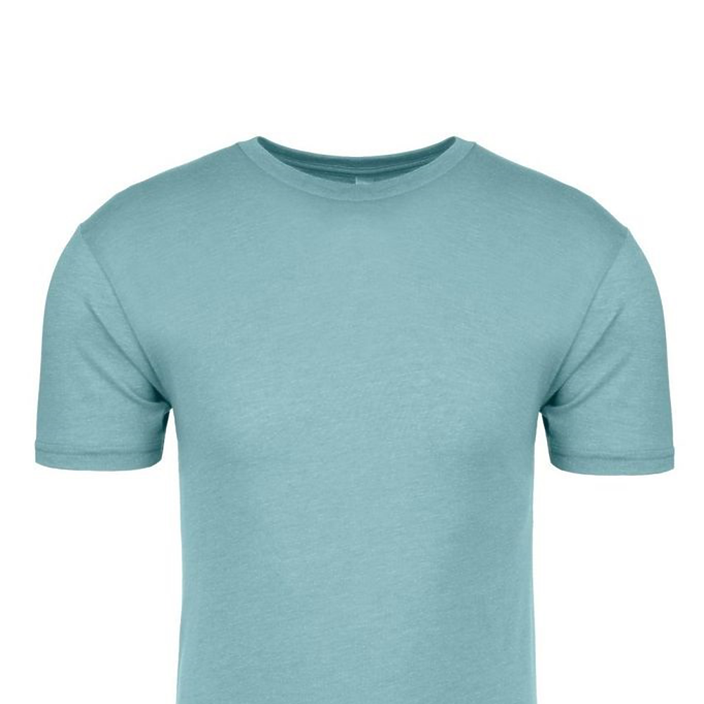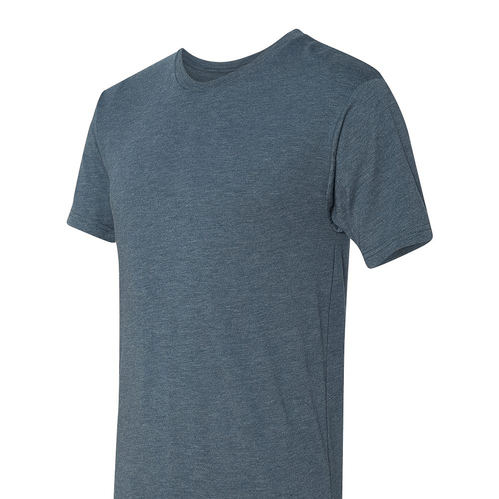 Next Level Unisex 4.3 Ounce Tri-Blend T-Shirt. 50/25/25% poly/combed ring-spun cotton/rayon tri-blend jersey fabric. Short sleeve crewneck tee. Classic fit. 32 singles, 4.3 ounce fabric. 1x1 baby rib set-in collar. Side seamed. 3/8 shoulder to shoulder binding. Tear away label.