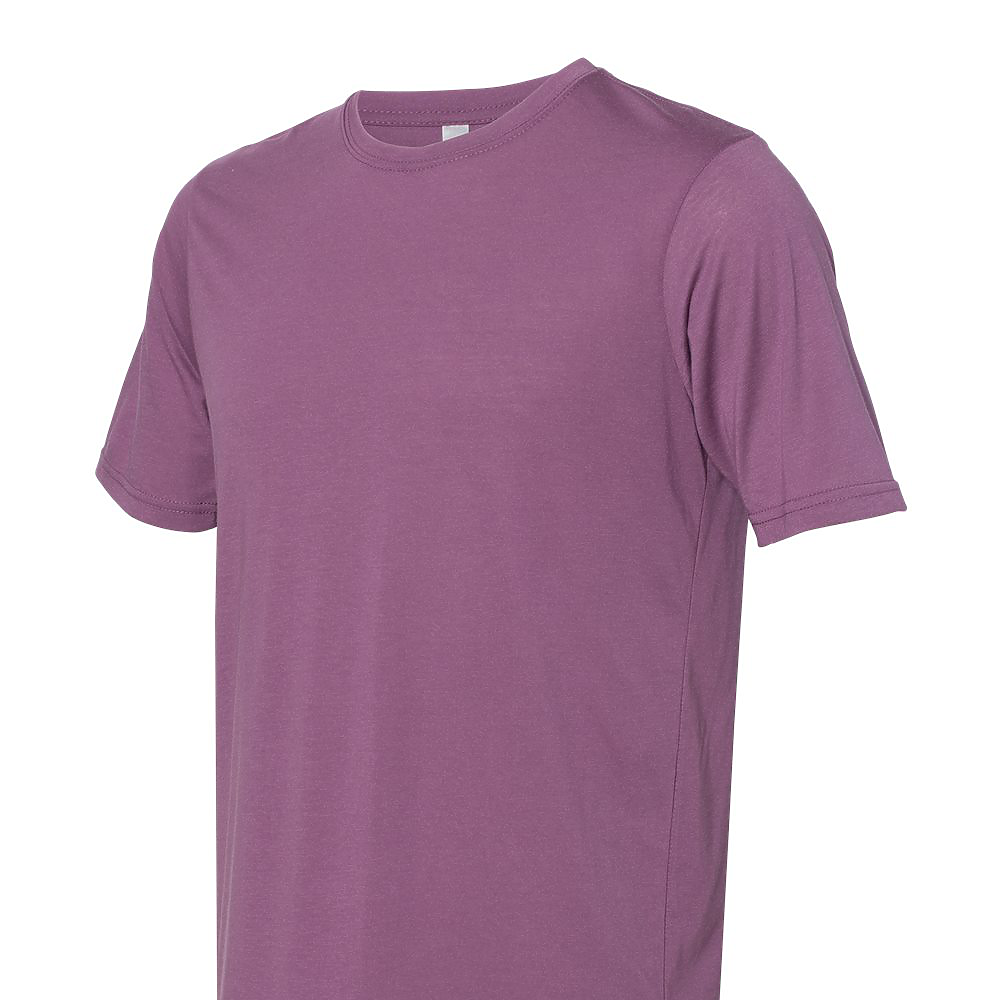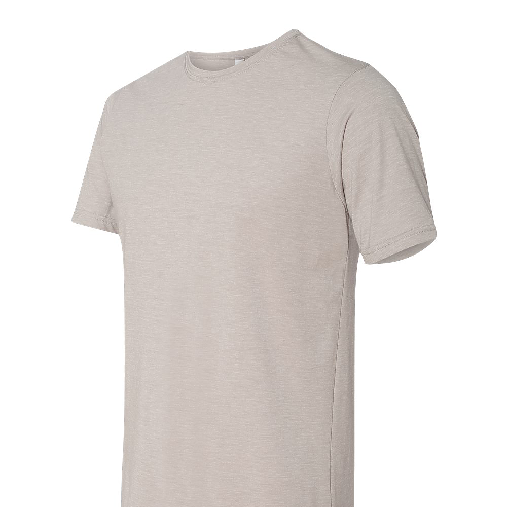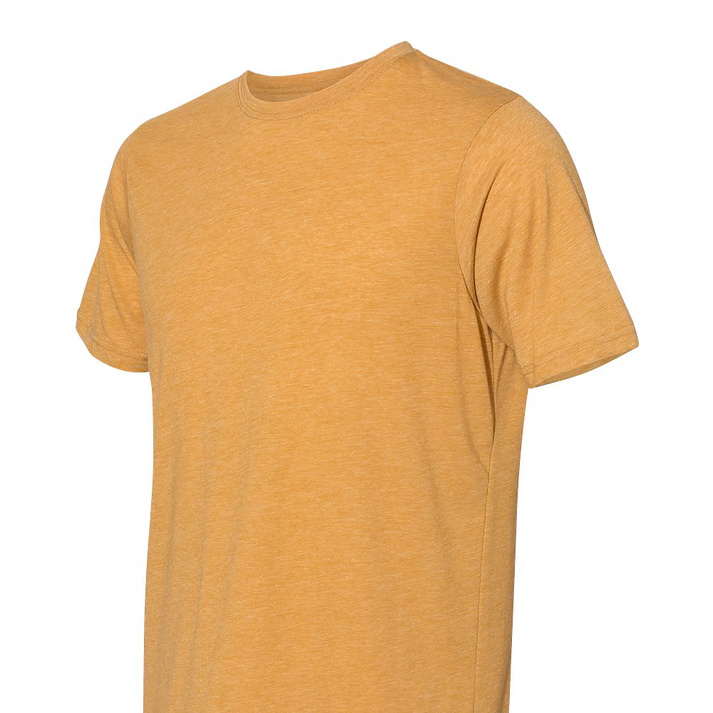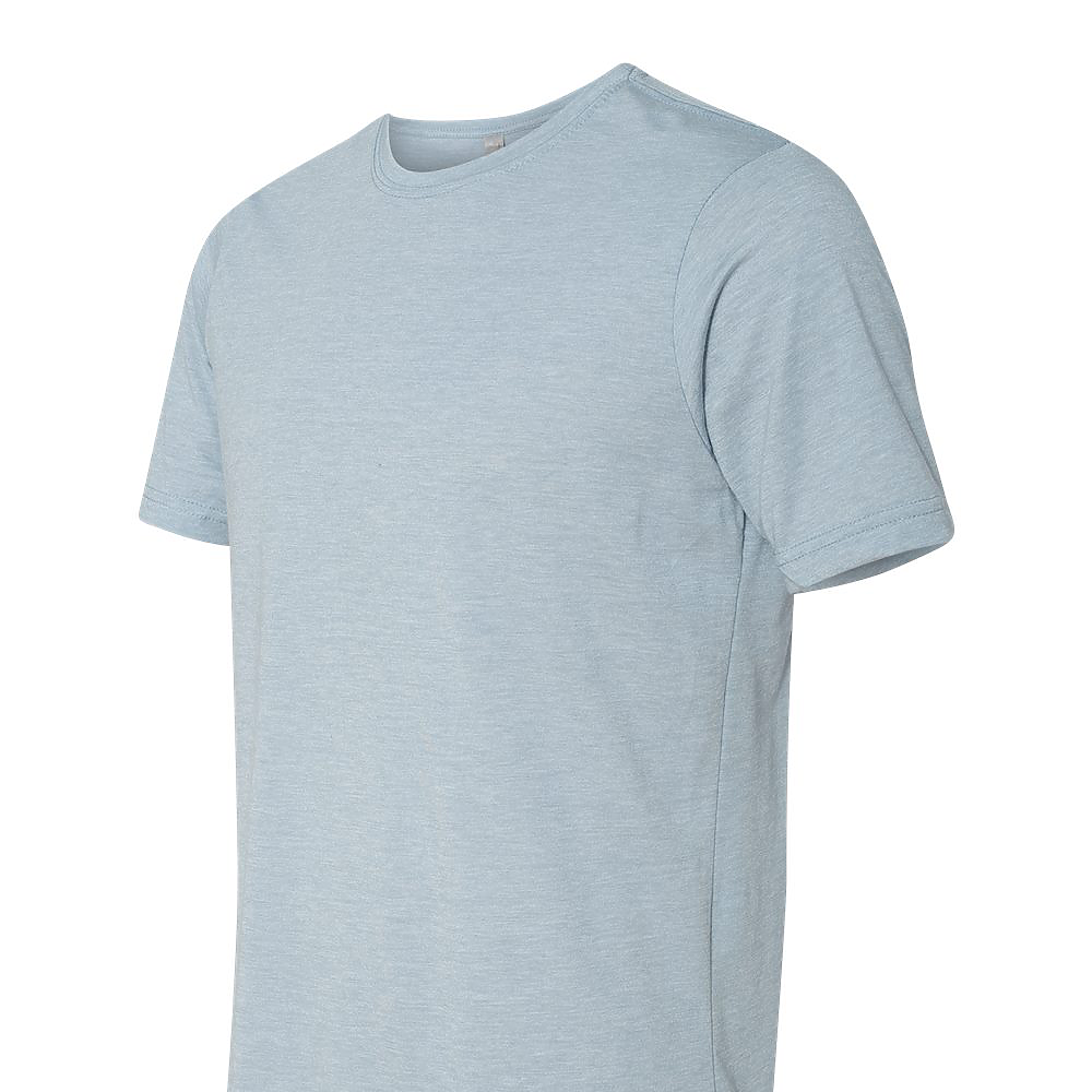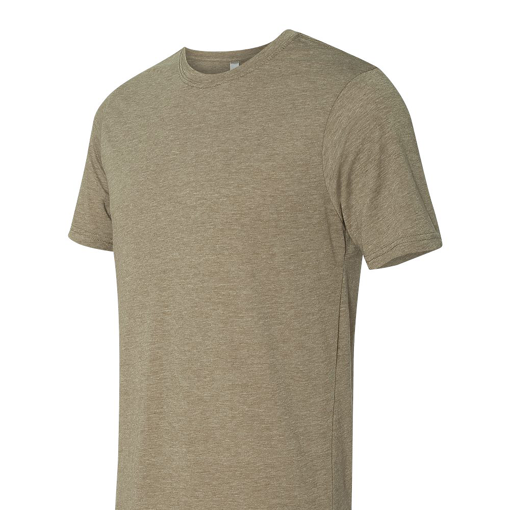 Next Level Unisex 3.5 Ounce Festival T-Shirt. 65/35% poly/combed ring-spun cotton 40 singles, 3.5 ounces. Self-fabric set-in collar with front cover stitch. Classic Fit. Hemmed sleeves and side-seamed. 3/8 shoulder to shoulder binding. Tear away label.