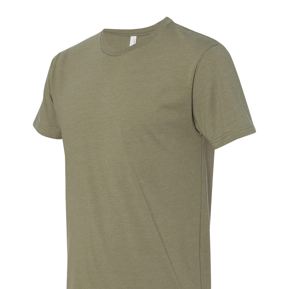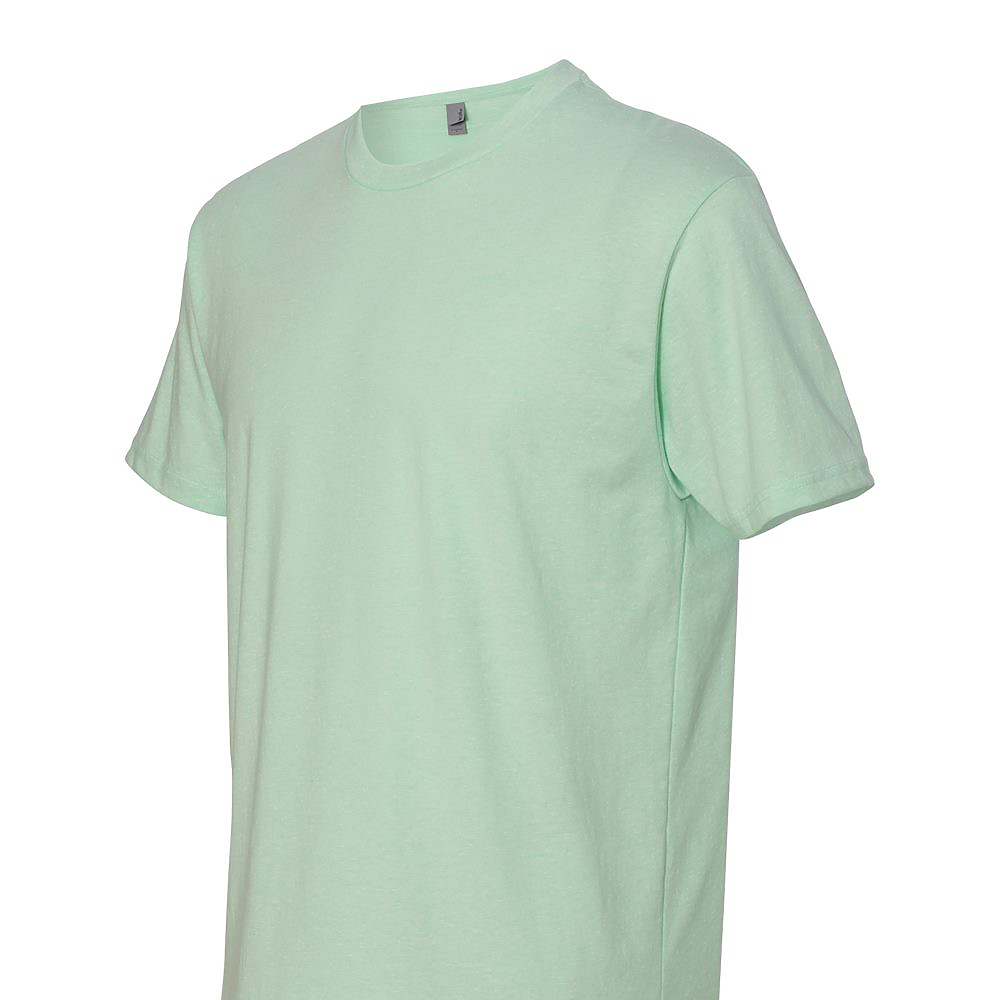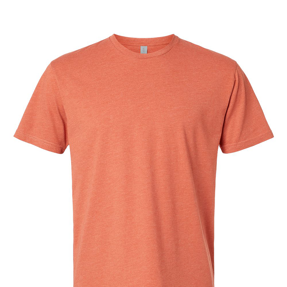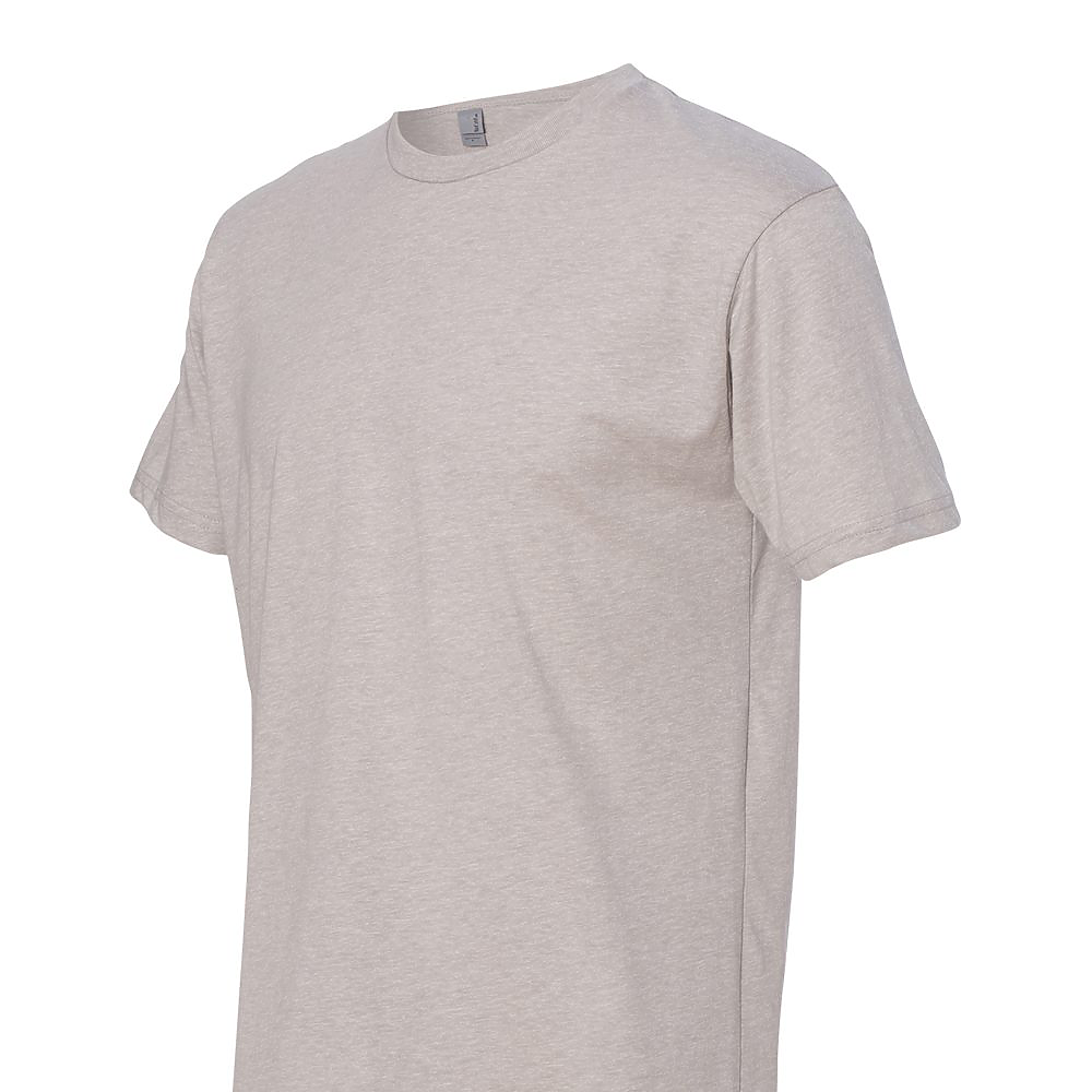 Next Level Unisex 4.3 Ounce CVC T-Shirt. 60/40 combed ring-spun cotton/poly jersey short sleeve crewneck tee. Classic fit. 32 singles, 4.3 ounce fabric. 1x1 baby rib set-in collar. Tear away label. Side seamed. 3/8 shoulder to shoulder binding.