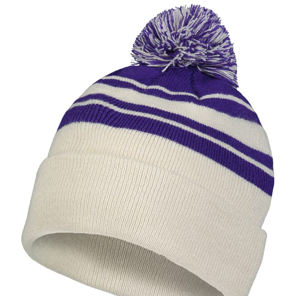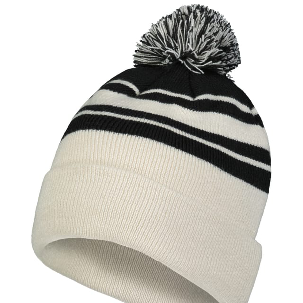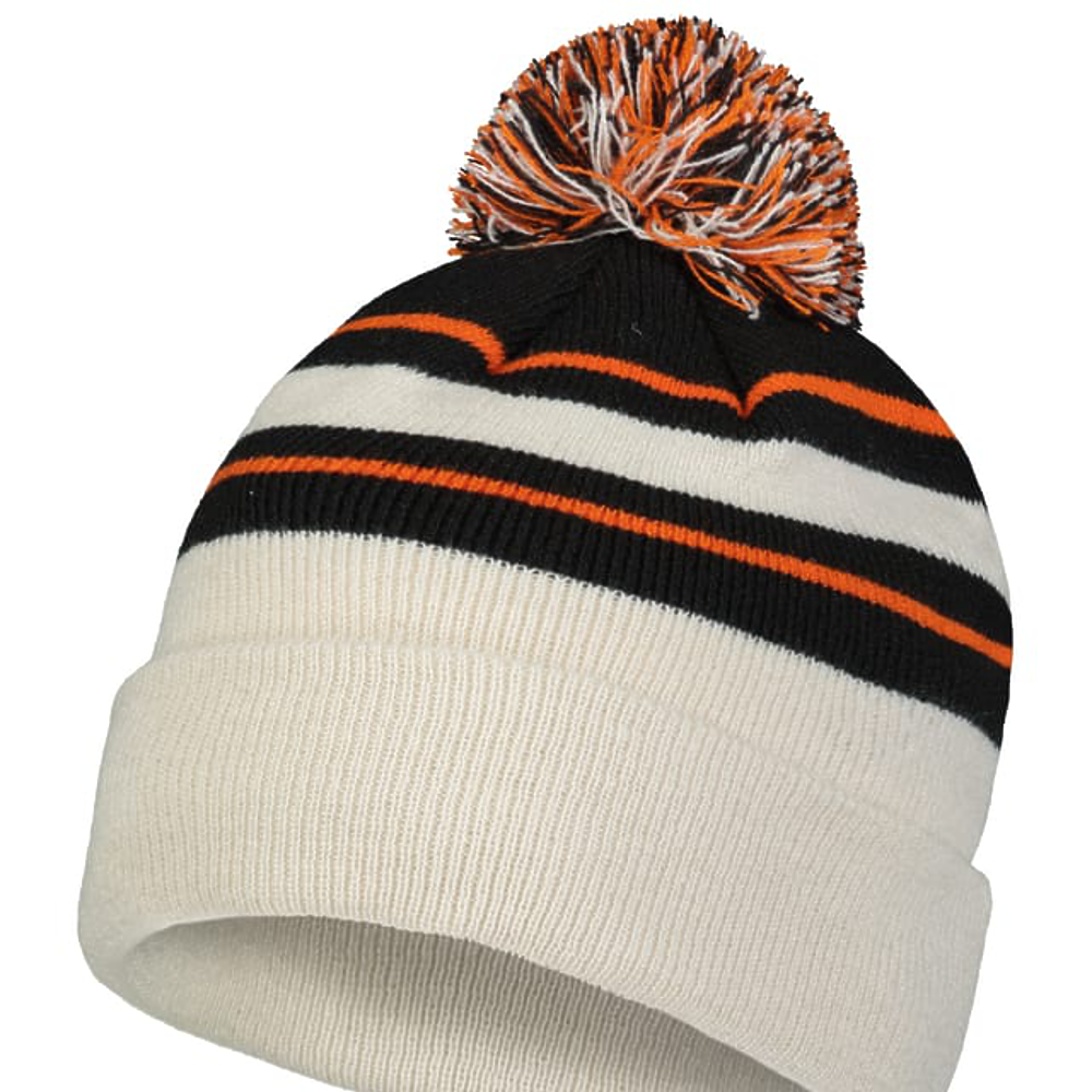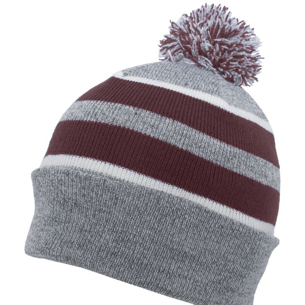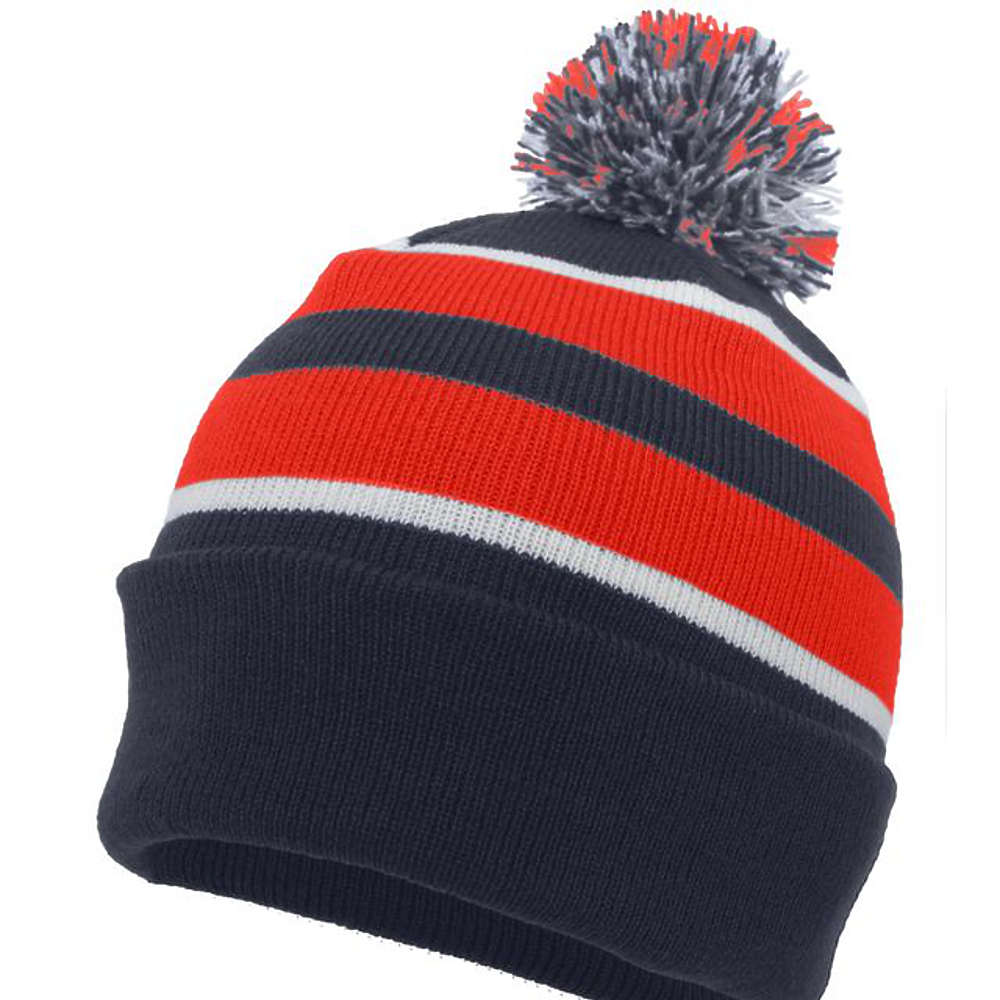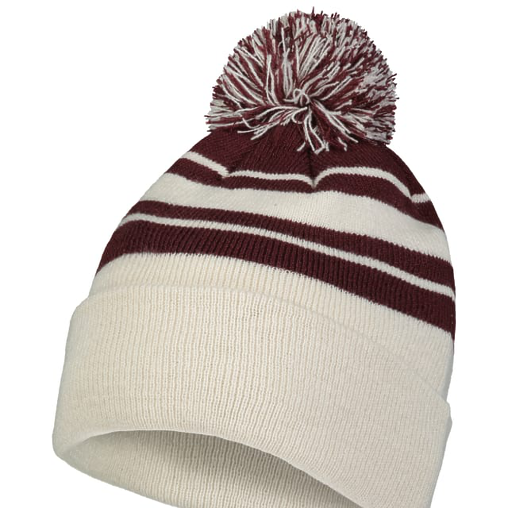 100% Acrylic. Contrast stripes on combo colors,pom-pom yarn top.