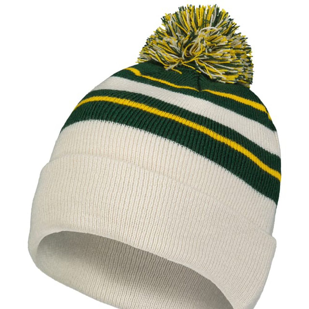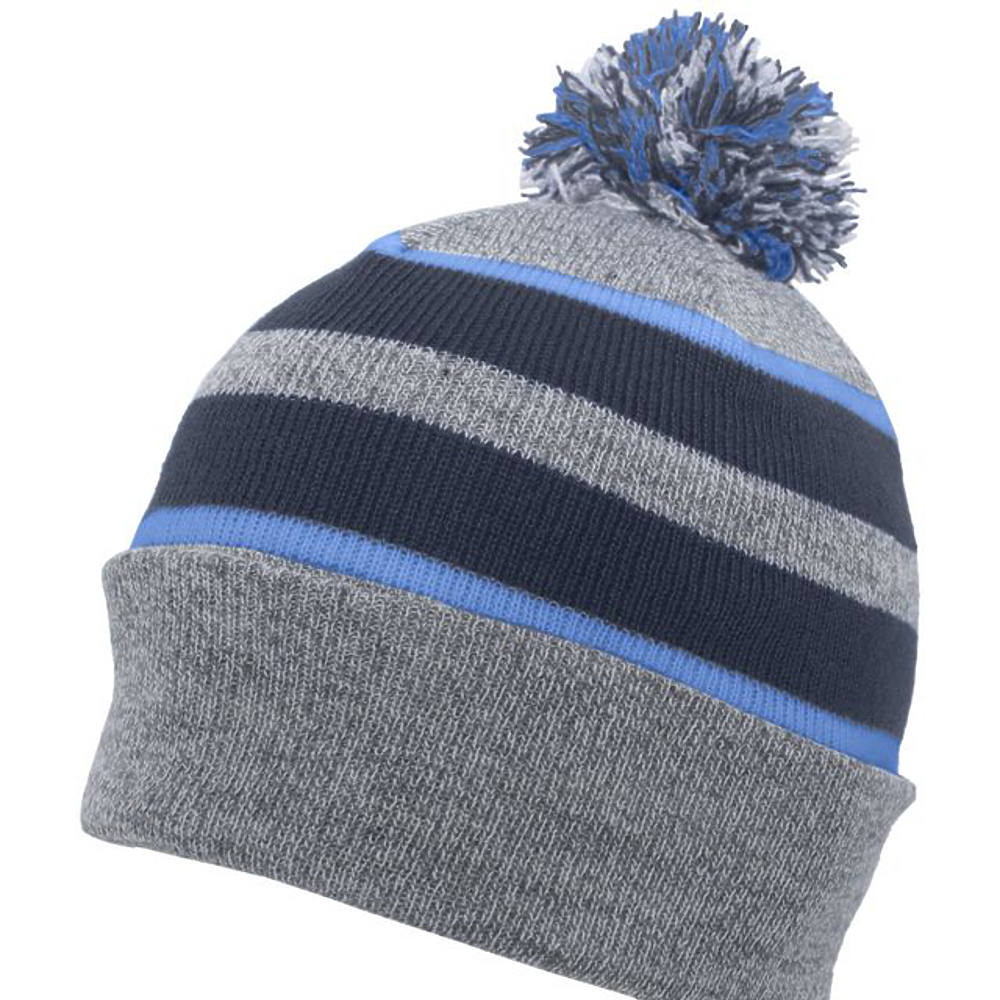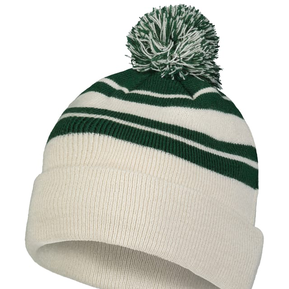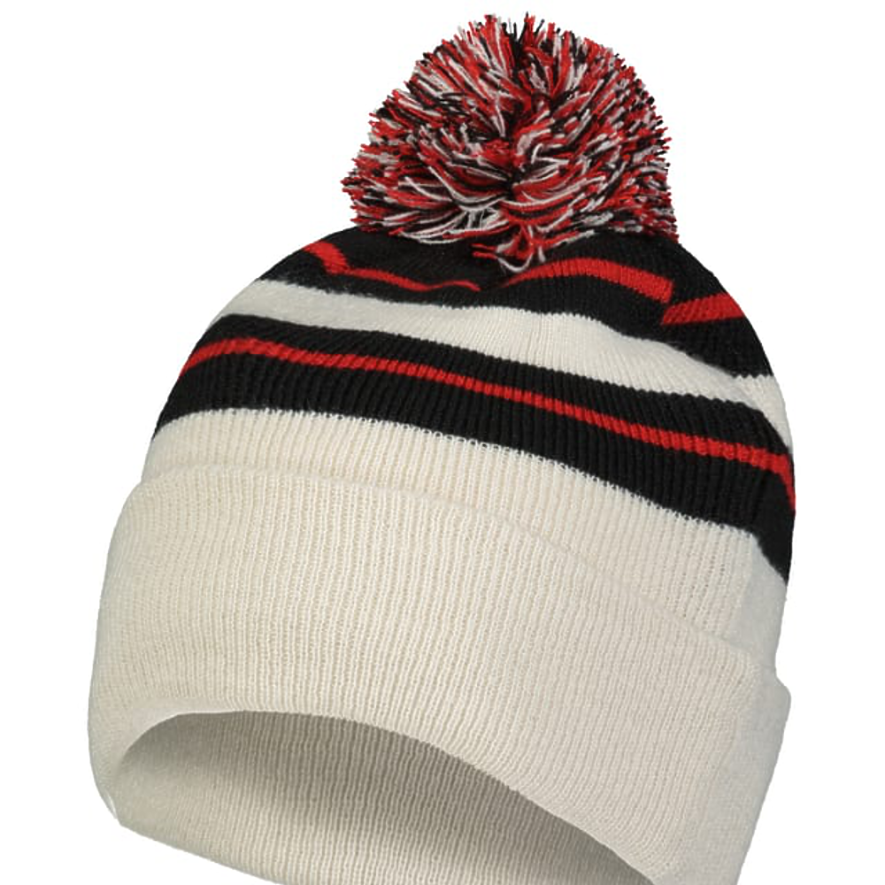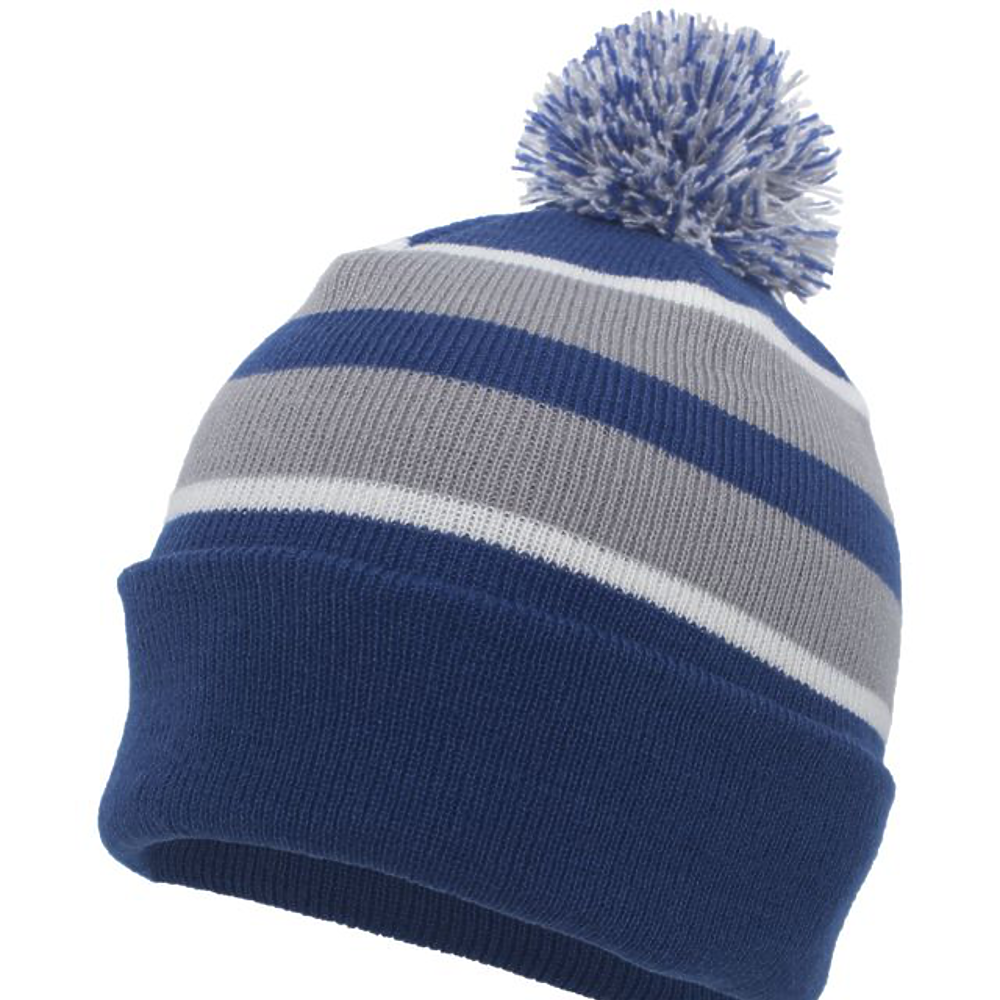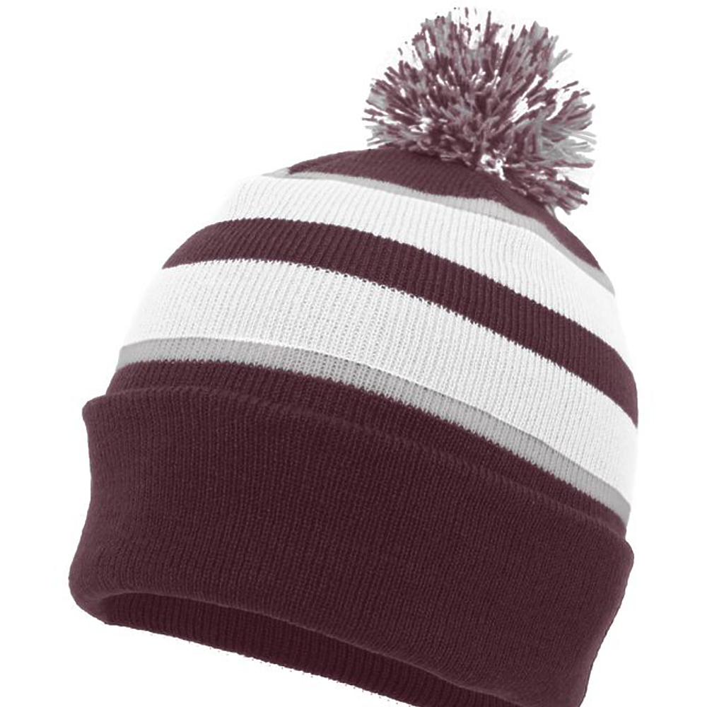 100% Acrylic. Contrast stripes on combo colors,pom-pom yarn top.
